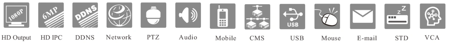 • Support 4/8 CH 6MP/5MP/4MP/3MP/1080P/ 960P/720P/960H/DI/CIF IP video input