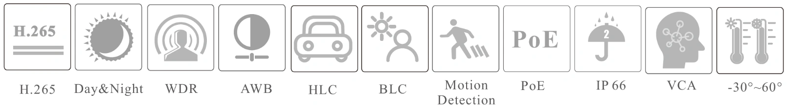 • 3D DNR, WDR, HLC, BLC and ROI coding