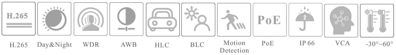 • 3D DNR, WDR, HLC, BLC and ROI coding