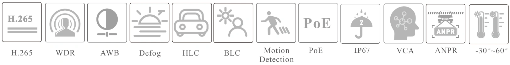 • 3D DNR, WDR, HLC, BLC and ROI coding